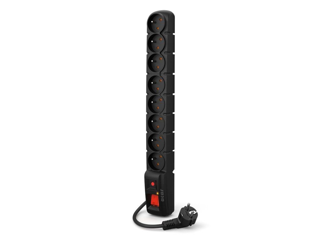ACAR S8 je základní model populární řady přepěťových ochran Acar. Jeho vysoká kvalita byla potvrzena našimi dlouholetými zkušenostmi na trhu. Zařízení je určeno jako univerzální přepěťová ochrana, která plní základní funkce ochrany jak počítačových systémů (stolních počítačů, notebooků, monitorů, tiskáren, skenerů atd.), tak i audiovizuálních systémů (LCD a plazmových televizorů, DVD/BD přehrávačů, tunerů, zesilovačů). Moderní a stylový design umožňuje umístění na jakékoli vhodné a viditelné místo (stůl, skříň), jeho štíhlé pouzdro zabírá málo místa. Osm chráněných 230V s uzemněním a automatickou pojistkou činí zařízení dostatečným pro většinu aplikací v kanceláři i doma.