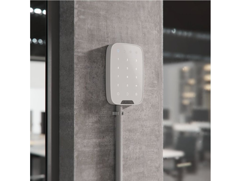 Ajax KeyPad Fibra je drátová dotyková klávesnice umožňující jednoduché ovládání zabezpečovacího systému zadáním číselného hesla či stisknutím tlačítka. V krizové situaci lze rovněž spustit tísňový poplach. Klávesnice je vybavena ochranou proti hádání hesla, která klávesnici po několika neúspěšných pokusech o zadání kódu automaticky uzamkne.