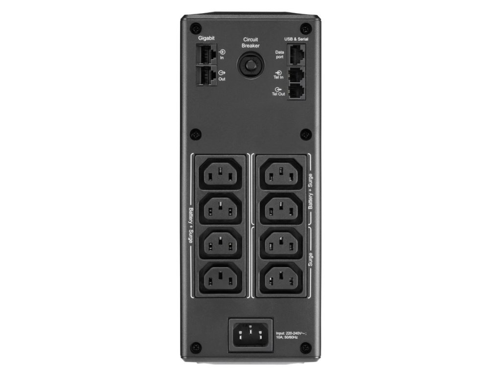 APC Back-UPS Pro BR 1300 VAZáložní zdroj o výkonu 780 W s ochranou proti přepětí a line-interaktivní topologií. Disponuje osmi IEC 320 C13 konektory a pro snadné ovládání je vybaven LCD displejem. Samozřejmostí je ochrana datové linky nebo autotest baterie, který včas upozorní, kdy je třeba její výměny. Akustická varování pak upozorňují na změny stavu jednotky UPS či parametrů napájení. Nechybí ani automatická regulace (AVR), která eliminuje výkyvy napětí způsobující zhoršení audio a video signálu a namáhání napájecích komponent. Ke správě jednotky slouží USB port.