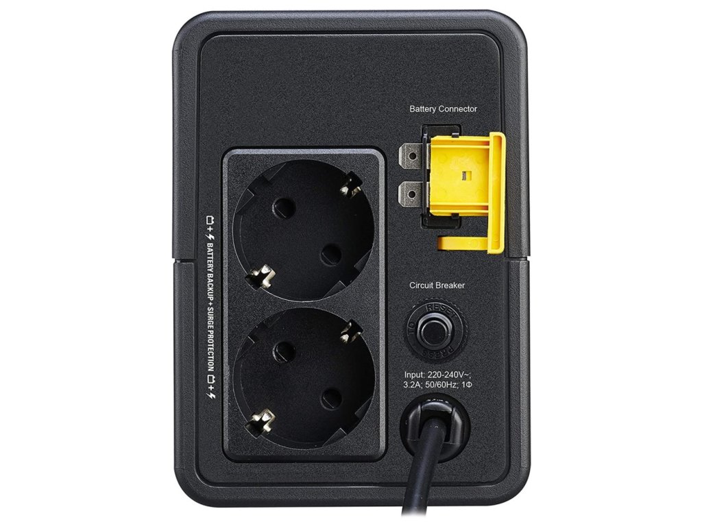 APC Easy UPS BVX 700 VAZáložní zdroj o výkonu 360 W se dvěma zásuvkami typu Schuko a line-interaktivní topologií je vhodný pro počítače, modemy, herní konzole a další elektroniku v domácnosti nebo kanceláři. Nabízí záložní napájení z baterie během výpadků a nestabilních kolísání napětí a také poskytuje ochranu proti poškození způsobenému přepětím a rázy. Automatická regulace (AVR) zvýší nebo sníží hodnotu napětí dle připojeného zařízení, zároveň prodlužuje životnost baterie. Akustická varování a signalizační LED dioda pak upozorňují na změny stavu jednotky UPS či parametrů napájení. K dispozici je také studený start poskytující přechodné napájení z baterií, není-li k dispozici napájení ze sítě.