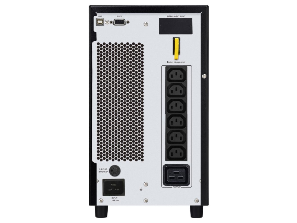 APC Easy UPS SRV 3000 VAZáložní zdroj o výkonu 2400 W s dvojitou online konverzí zajistí ochranu napájení i v těch nejméně stabilních podmínkách. Disponuje šesti IEC 320 C13 a jedním IEC 320 C19 konektorem. Pro snadné ovládání je vybaven LCD displejem. K rozšíření nabízí také lehce dostupný Smart slot. Ke správě jednotky pak slouží USB port.