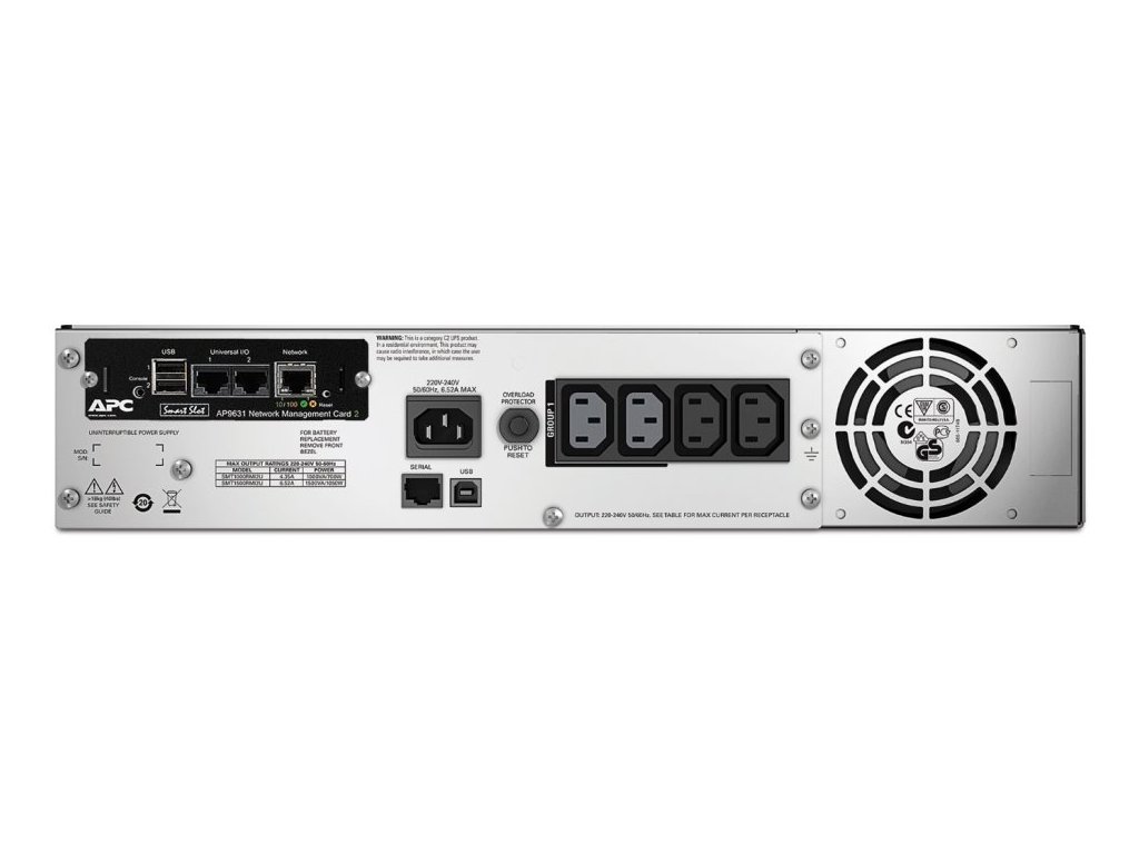 APC Smart-UPS 1500 VAZáložní zdroj APC Smart-UPS nabízí inteligentní a efektivní ochranu síťového napájení od základní úrovně po škálovatelnost za provozu. Ideální pro servery, prodejní terminály, směrovače, přepínače, rozbočovače a další síťová zařízení. Součástí řešení je software PowerChute pro správu, jenž umožňuje administrátorům IT bezpečné vypnutí systému a vzdálenou správu záložního zdroje. Intuitivní LCD rozhraní poskytuje přehledné informace s možností nakonfigurovat UPS místně pomocí jednoduchých navigačních kláves, USB port a sériový port (RJ-45) umožňuje správu jednotek. Tento model o výšce 2U nabízí snadnou montáž do Racku a je rozšířený o kartu síťového ovládání jednotky se sledováním prostředí AP9631.
