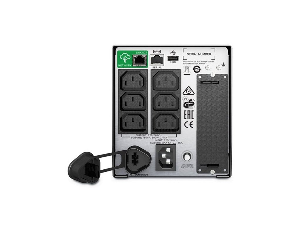 APC Smart-UPS 750 VAZáložní zdroj ve formátu Tower o výkonu 500 W disponuje šesti IEC 320 C13 konektory. Pro snadné ovládání je vybaven LCD displejem. Ke vzdálené komunikaci a konfiguraci lze využít RJ-45 port, případně USB port. K rozšíření nabízí také lehce dostupný Smart slot.