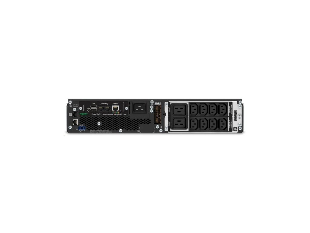 APC Smart-UPS SRT 3000 VAZáložní zdroj ve formátu rack 2U o výkonu 2700 W. Pro snadné ovládání je vybaven LCD displejem. Disponuje dvěma IEC 320 C19 konektory a osmi IEC 320 C13 konektory. Ke vzdálené komunikaci a konfiguraci lze využít síťovou kartu APC AP9631, případně USB port.