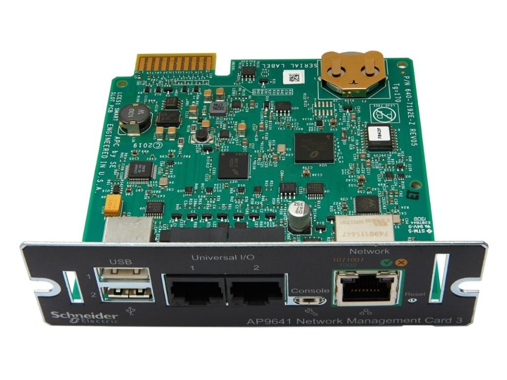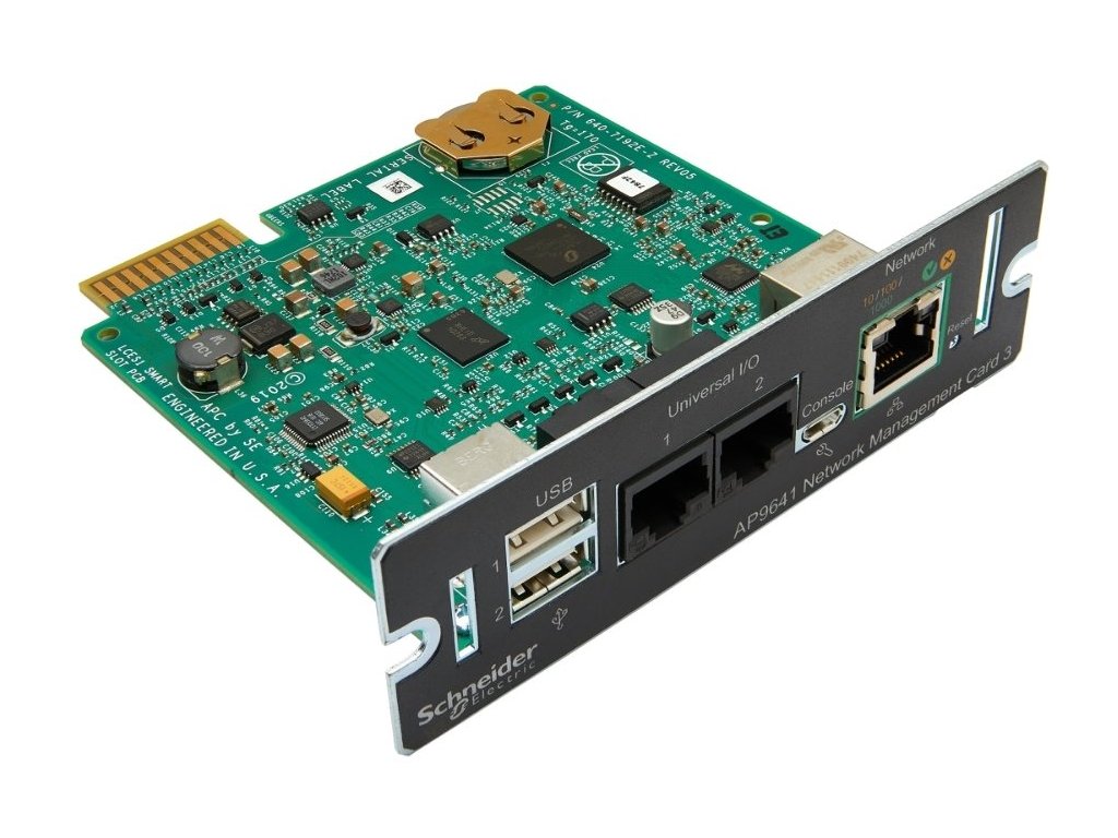 APC UPS Network Management Card 3 AP9641Síťová karta pro vzdálené monitorování a řízení jednotlivého zdroje UPS díky jeho přímému připojení do sítě. Nabízí vzdálenou správu pomocí protokolů telnet a SSH, zabezpečené připojení prostřednictvím protokolu HTTPS/SSL, SSH (až 2048bitové šifrování) a SNMP verze 3. Modul dále podporuje reporting informací o UPS systémům správy budovy nebo jiným řídícím systémům třetí strany prostřednictvím protokolu Modbus TCP, přístup přes webový prohlížeč až pro 8 uživatelů najednou a přes síťové rozhraní příkazového řádku až pro 3 uživatele najednou.