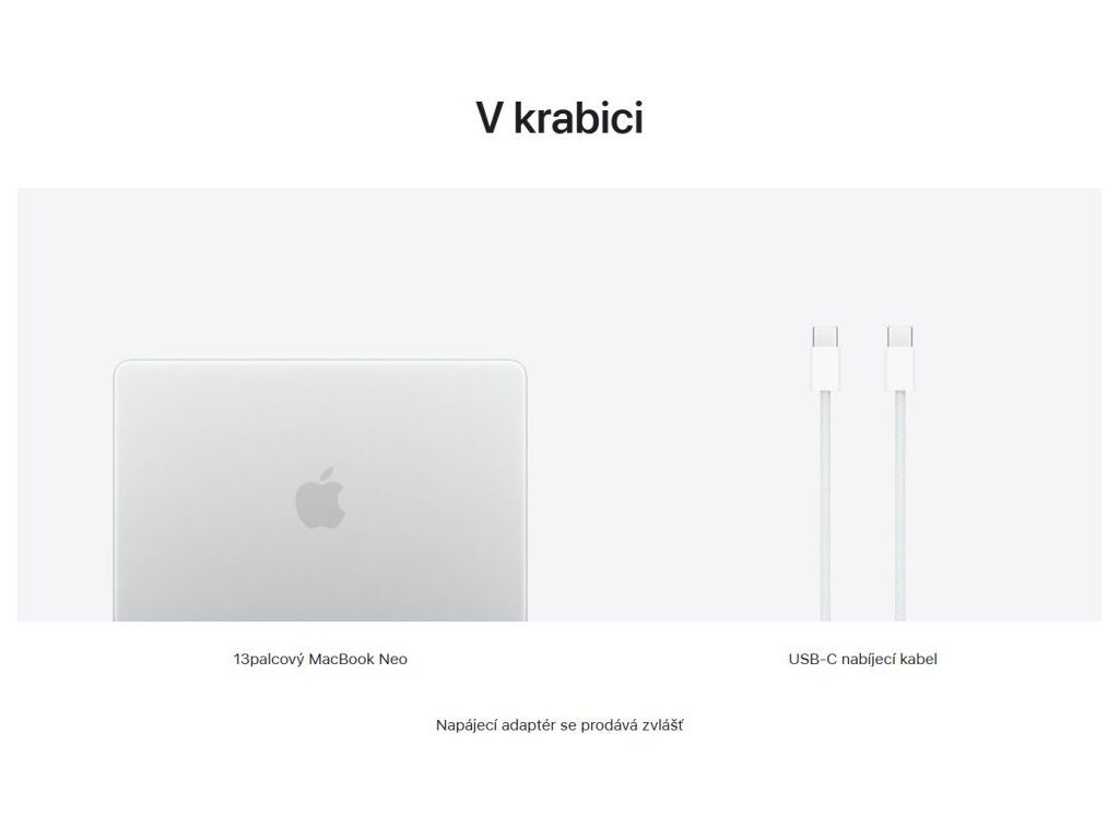 Apple MacBook Neo 13" (2026) / A18 Pro / 6C CPU / 5C GPU / 8GB RAM / 256GB SSD / Stříbrný