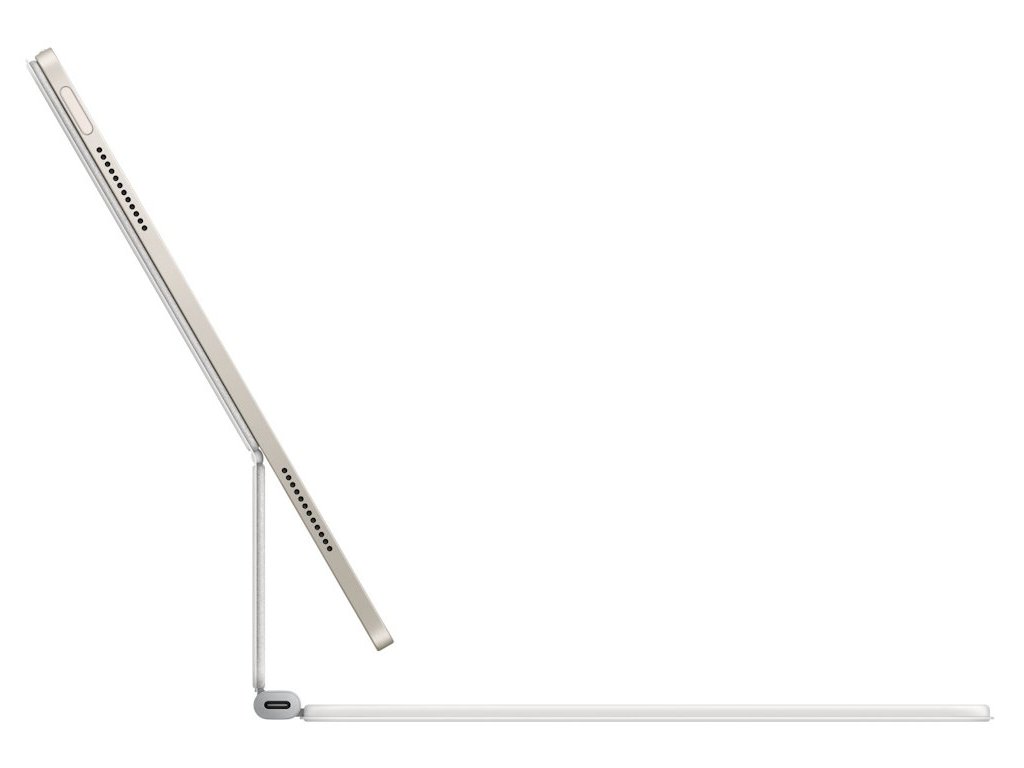 Klávesnice je vybavena řadou 14 funkčních kláves pro rychlé ovládání jasu, hlasitosti a dalších funkcí. Díky nůžkovému mechanismu s 1mm zdvihem nabízí pohodlné a přesné psaní. Magic Keyboard zároveň chrání iPad z obou stran a obsahuje USB-C konektor pro průchozí nabíjení, takže port iPadu zůstává volný pro připojení dalších příslušenství.