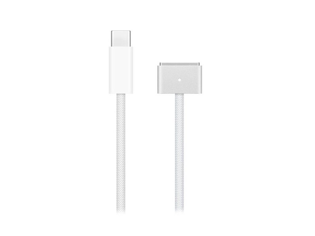 Apple USB typ C (M) na MagSafe 3 2 mNapájecí kabel s magnetickým konektorem MagSafe 3, který snadno navede zástrčku do napájecího portu MacBooku Pro. Ve spojení s kompatibilním USB-C napájecím adaptérem poslouží k rychlému nabíjení MacBooku Pro z elektrické zásuvky. Při nabíjení baterie svítí LED na konektoru oranžově, při plném nabití svítí zeleně. Pro dlouhou životnost je kabel opletený.