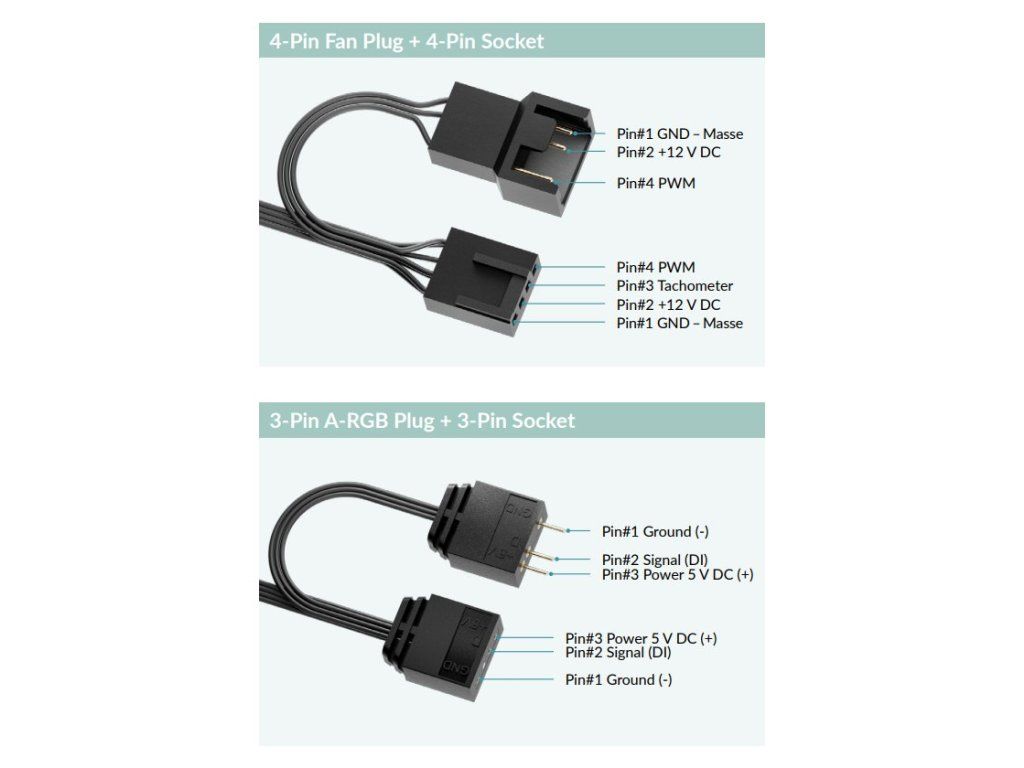 Konektory: 4-pin PWM + 3-pin A-RGB (s průchozími konektory)
