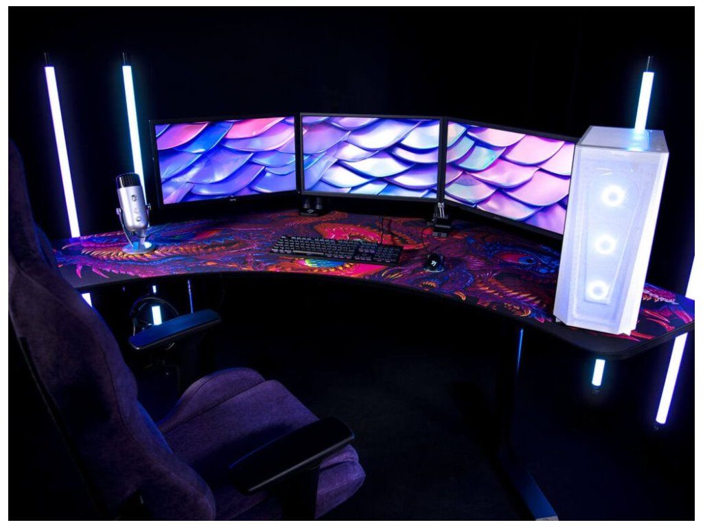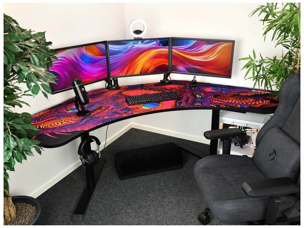 Arozzi Arena Angelo DeskPad Crawling ChaosVoděodolná podložka z mikrovlákna navržená přesně tak, aby odpovídala tvaru stolu Arozzi Arena Angelo. Spodní strana je vyrobena z protiskluzového materiálu. Podložku lze prát v pračce.