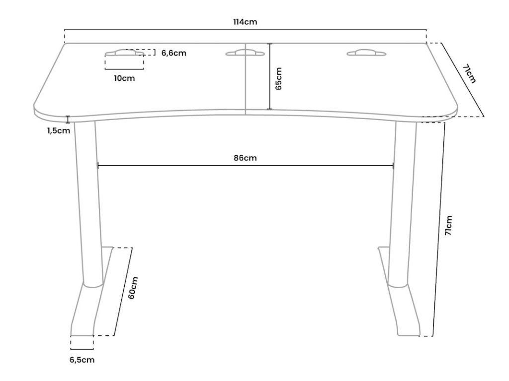 Arozzi Arena SmallHerní stůl Arozzi Arena Small je prostorově úspornější a kompaktnější verze stolu Arozzi Arena. Díky délce 114 cm je možné na něj umístit až dva velké monitory a šířka 71 cm nabízí dostatek prostoru pro myš, klávesnici a další příslušenství. Rám stolu je vyroben z kvalitního pevného materiálu. Stůl je vybaven třemi výřezy pro vedení kabelů a upevnění monitorů. Povrch pracovní plochy s protiskluzovou úpravou je odnímatelný, vyrobený z mikrovlákna, voděodolný a lze jej prát v pračce.
