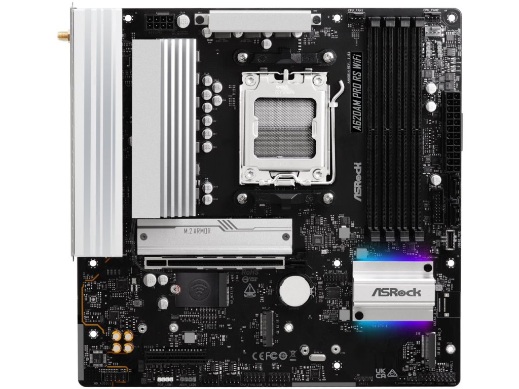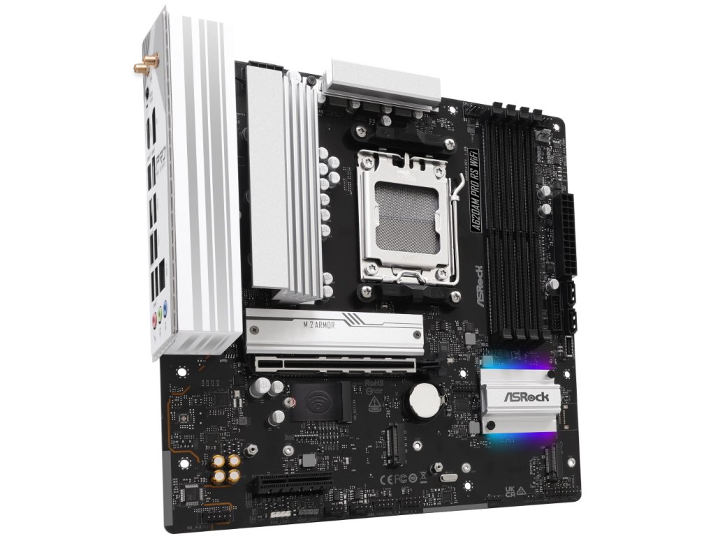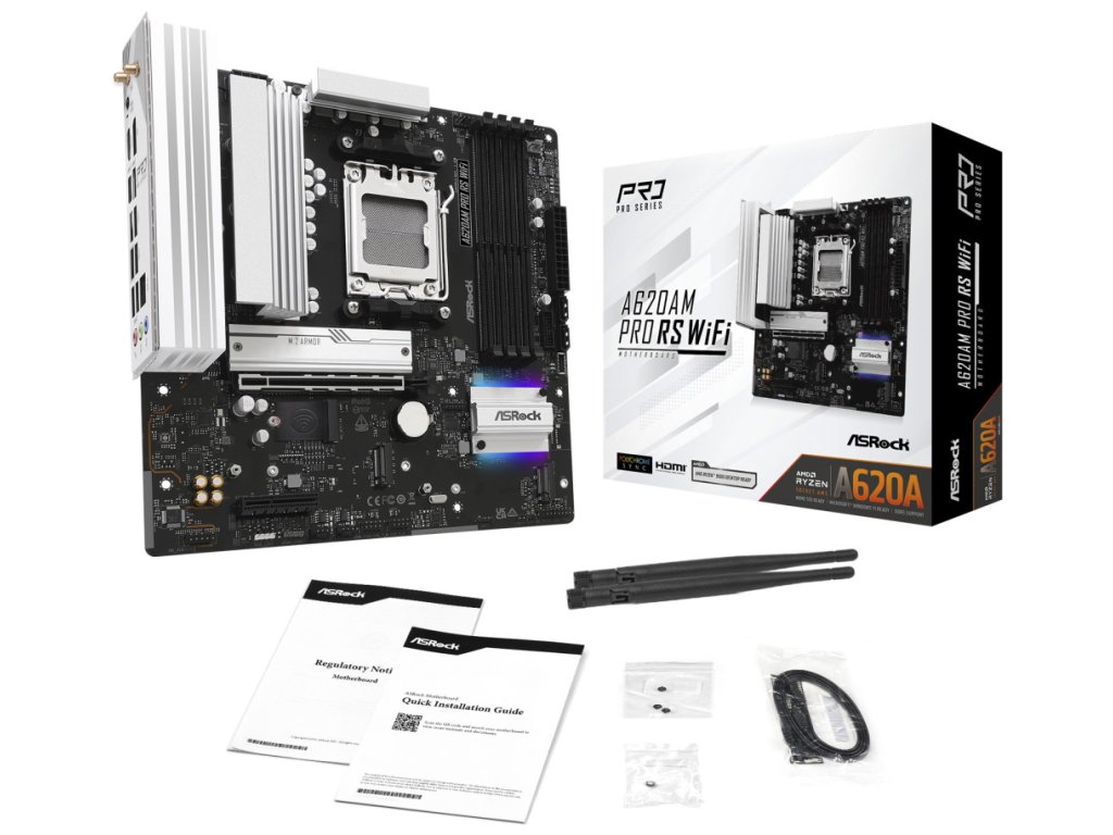 ASRock A620AM Pro RS WiFi / AMD A620A / AM5 / 4x DDR5 DIMM / 3x M.2 / HDMI / DP / USB-C / WiFi / mATX