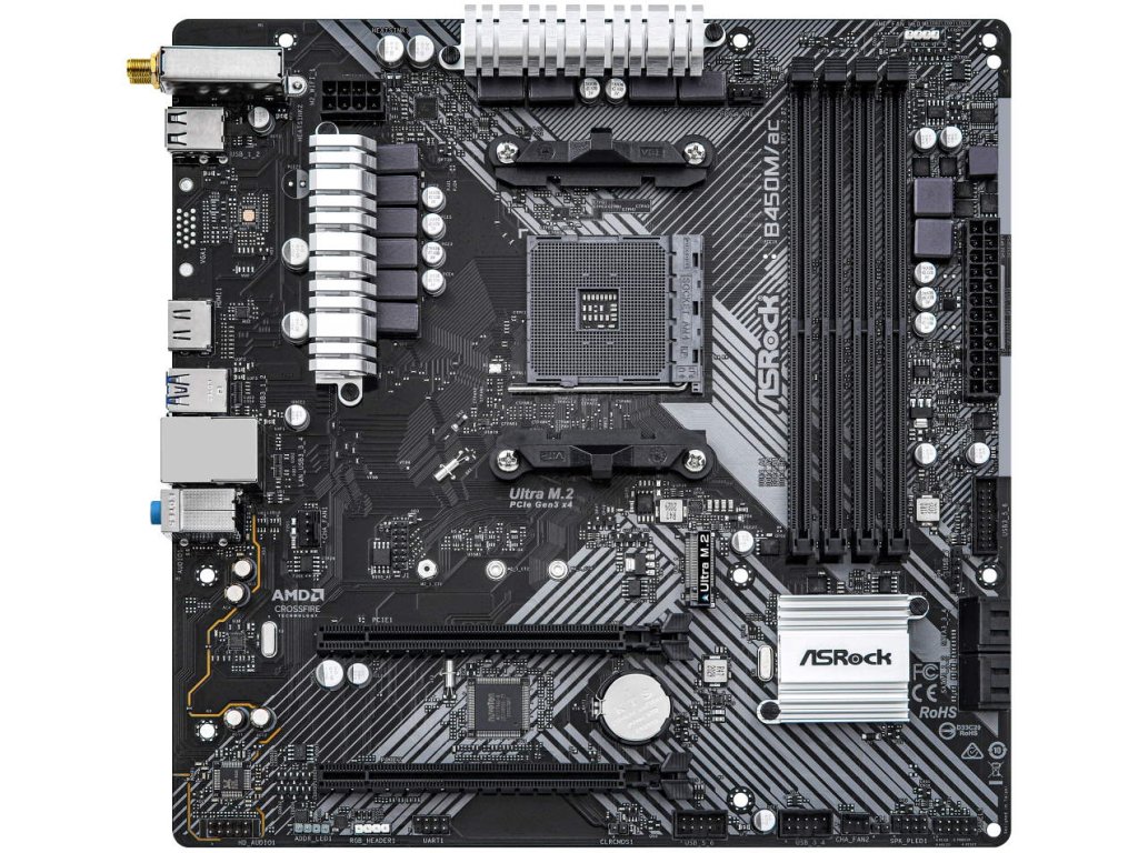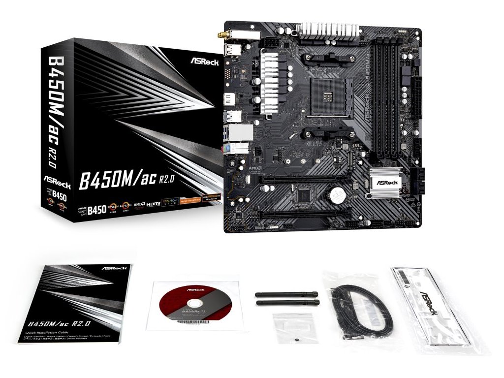 ASRock B450M/AC R2.0 / AMD B450 / AM4 / 4x DDR4 DIMM / M.2 / HDMI / WiFi / mATX