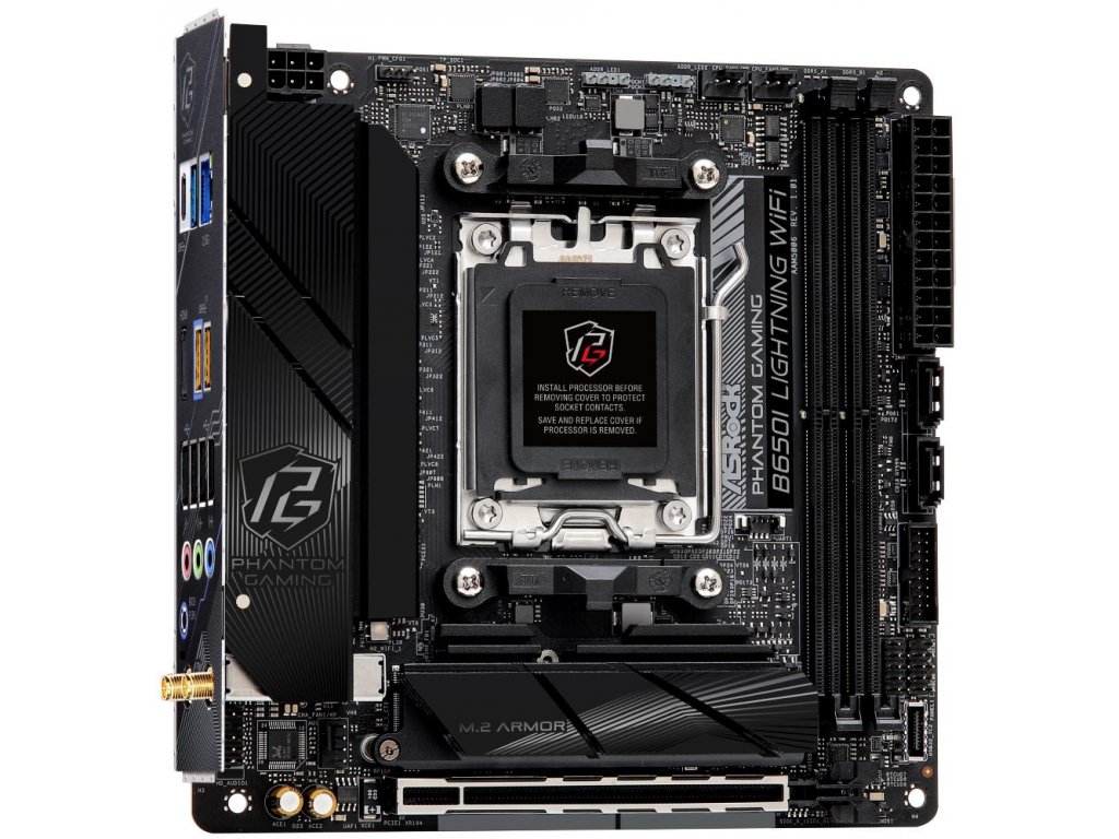 ASRock B650I Lightning WiFi / AMD B650 / AM5 / 2x DDR5 DIMM / 2x M.2 / HDMI / USB-C / WiFi / Mini-ITX