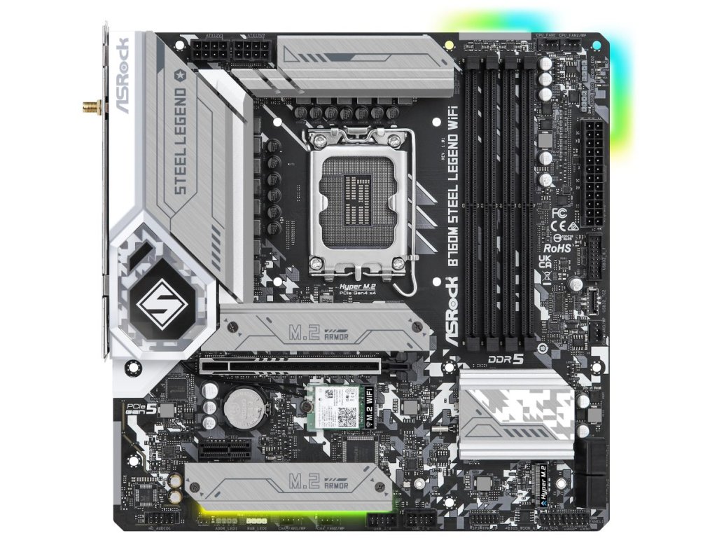ASRock B760M STEEL LEGEND WIFI / Intel B760 / LGA1700 / 4x DDR5 / 3x M.2 / HDMI / DP / USB-C / WiFi / mATX