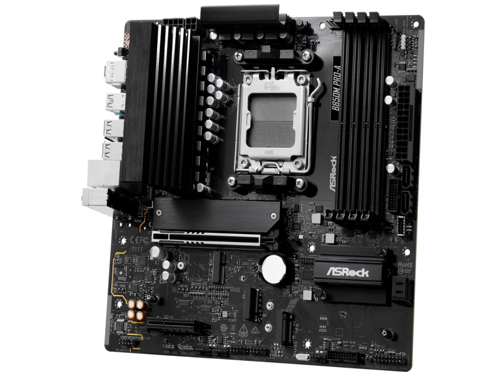 ASRock B850M Pro-A / AMD B850 / AM5 / 4x DDR5 DIMM / 3x M.2 / HDMI / DP / USB-C / mATX