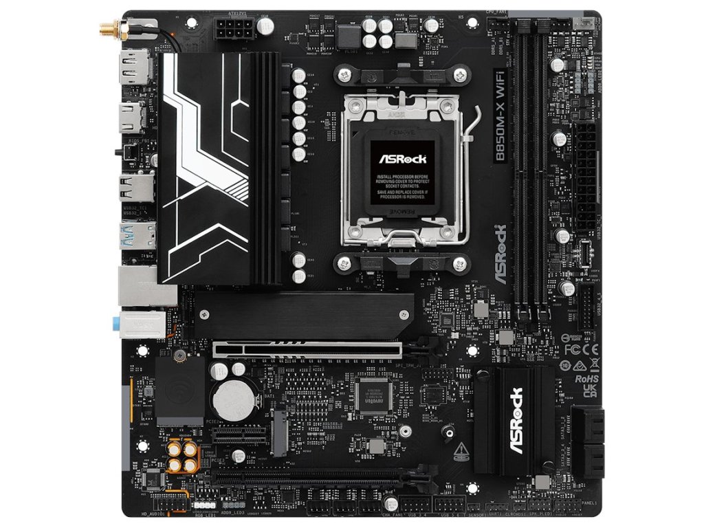 ASRock B850M-X WiFi R2.0 / AMD B850 / AM5 / 2x DDR5 DIMM / 2x M.2 / HDMI / DP / USB-C / WiFi / mATX