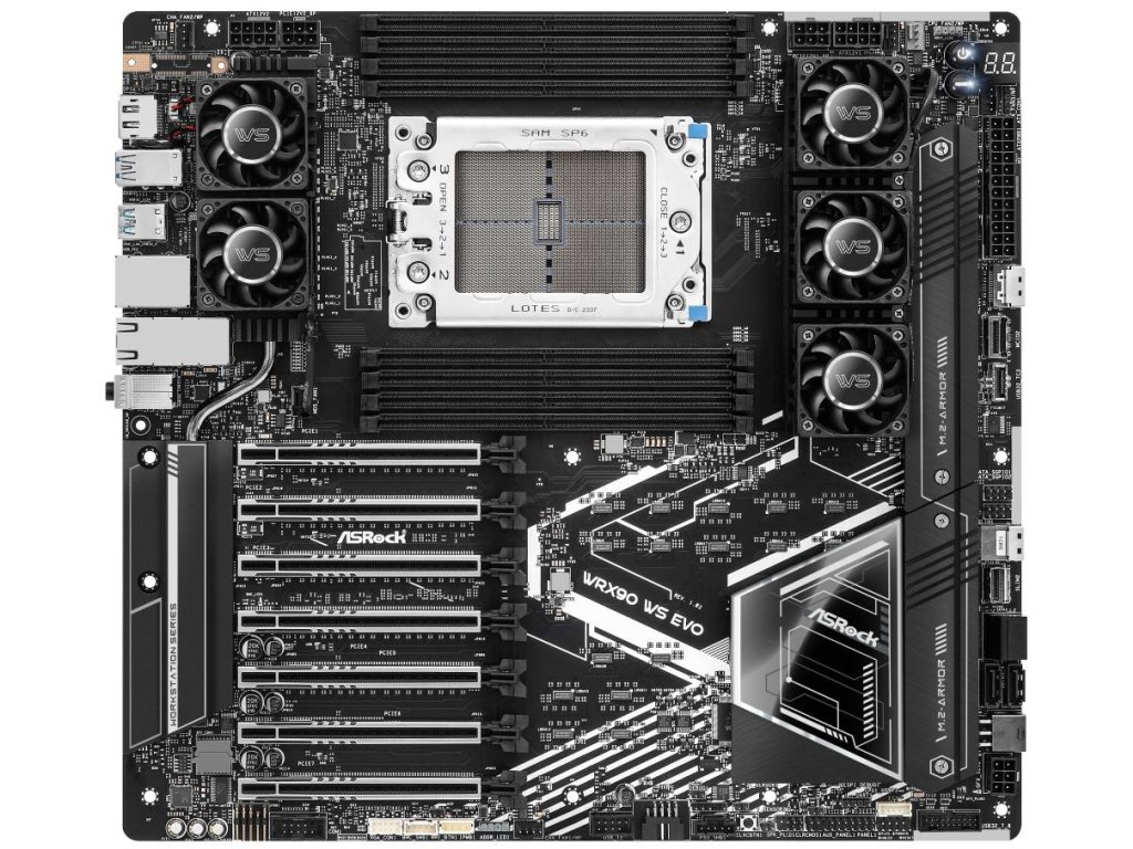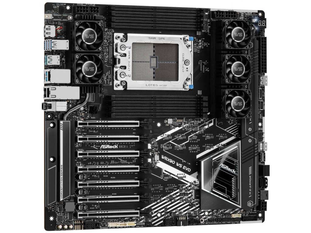 ASRock WRX90 WS EVO / AMD WRX90 / 8x DDR5 DIMM ECC / 2x M.2 / 2x SlimSAS / 2x MCIO / USB-C / DP / EEB
