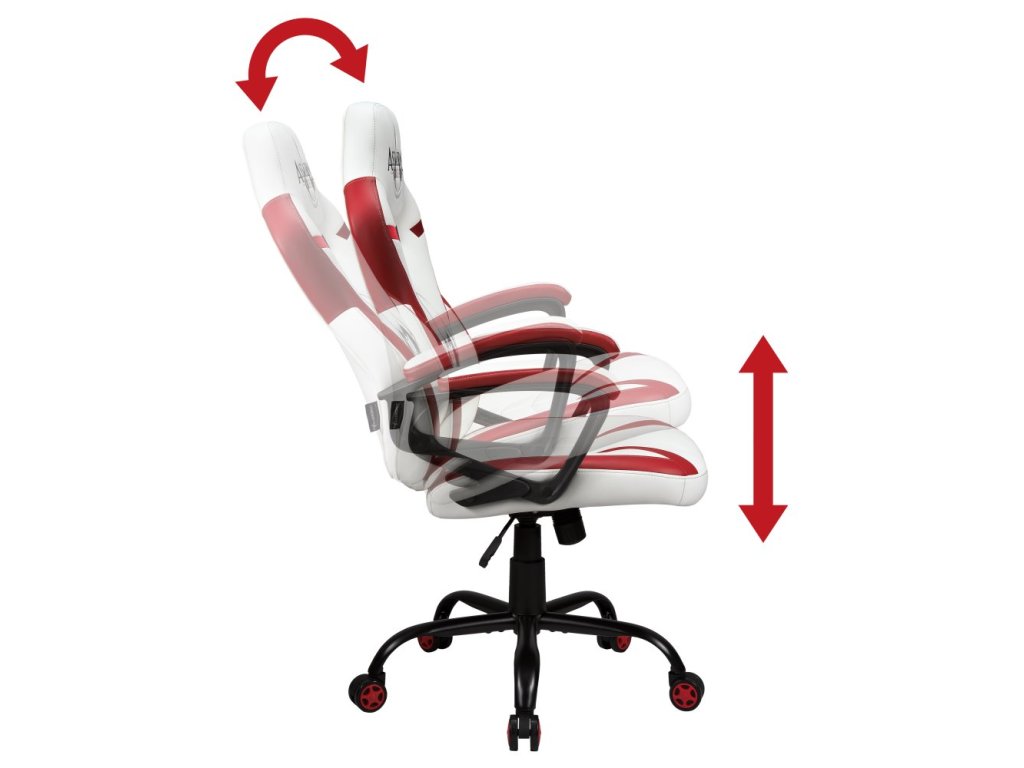Assassin's Creed Junior Gaming SeatStylová herní židle pro fanoušky série Assassin's Creed poskytuje dokonalou oporu a pohodlí i při dlouhém sezení u počítače. Je vyrobena z kvalitní syntetické kůže, která je příjemná na dotek, a navíc se snadno čistí. Pro celkové nastavení výšky židle je k dispozici plynový píst třídy 3, který vyniká dlouhou trvanlivostí. Nosnost židle je až 100 kg.