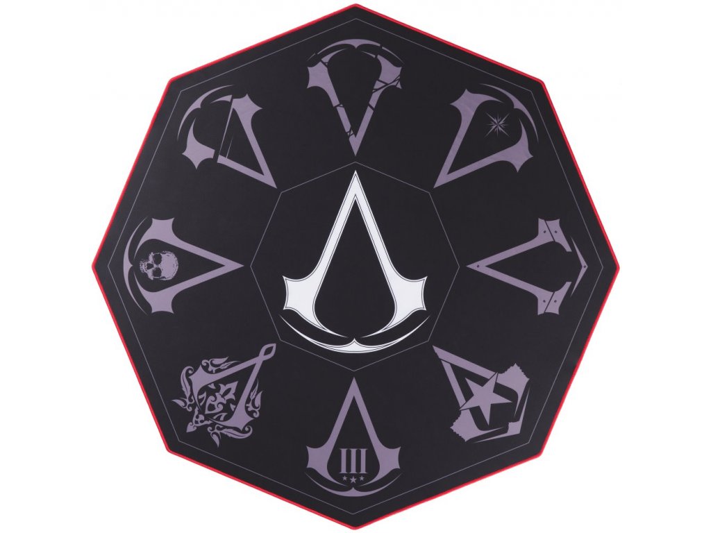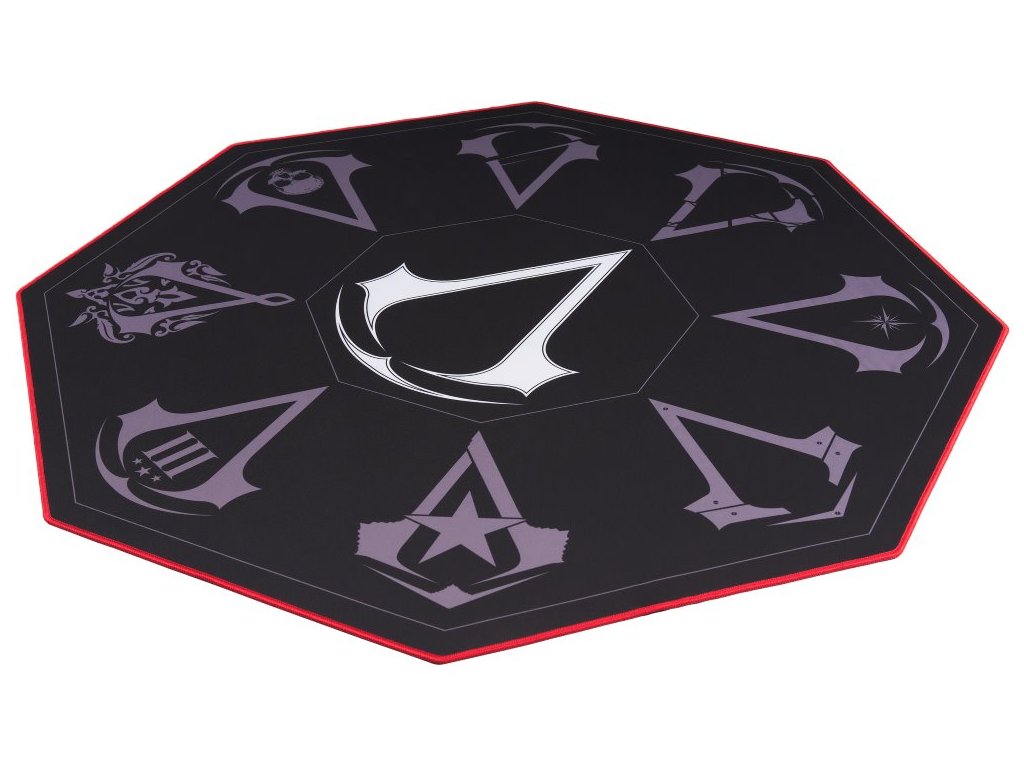 Assassin's Creed Gaming Floor MatOchranná podložka pod herní židle pro fanoušky série Assassin's Creed je určena k tlumení hluku koleček při přejíždění židlí po podlaze. Je tak ideální pro všechny, kdo nechce rušit sousedy či spolubydlící. Navíc slouží také jako ochrana proti poškrábání podlahy. Spodní strana je protiskluzová, podložka tak zůstane i při pohybu židle na svém místě.