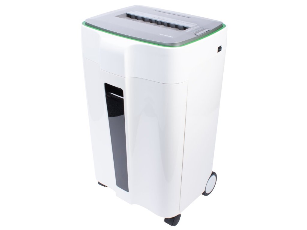 AT AT-22MCSkartovací stroj atraktivního designu pro střední kanceláře. Je vhodný pro skartaci dokumentů o šířce až 230 mm. Stroj je standardně vybaven automatickým systémem start/stop, zpětným chodem, tepelnou pojistkou motoru proti přehřátí a signalizací přeplněného koše. Příležitostně lze skartovat sešívací sponky a díky samostatnému vstupu i kreditní karty a CD. Odpadní nádoba o objemu 30 litrů je vybavena průhledným okénkem pro optickou kontrolu. Praktická pojezdová kolečka usnadňují manipulaci.