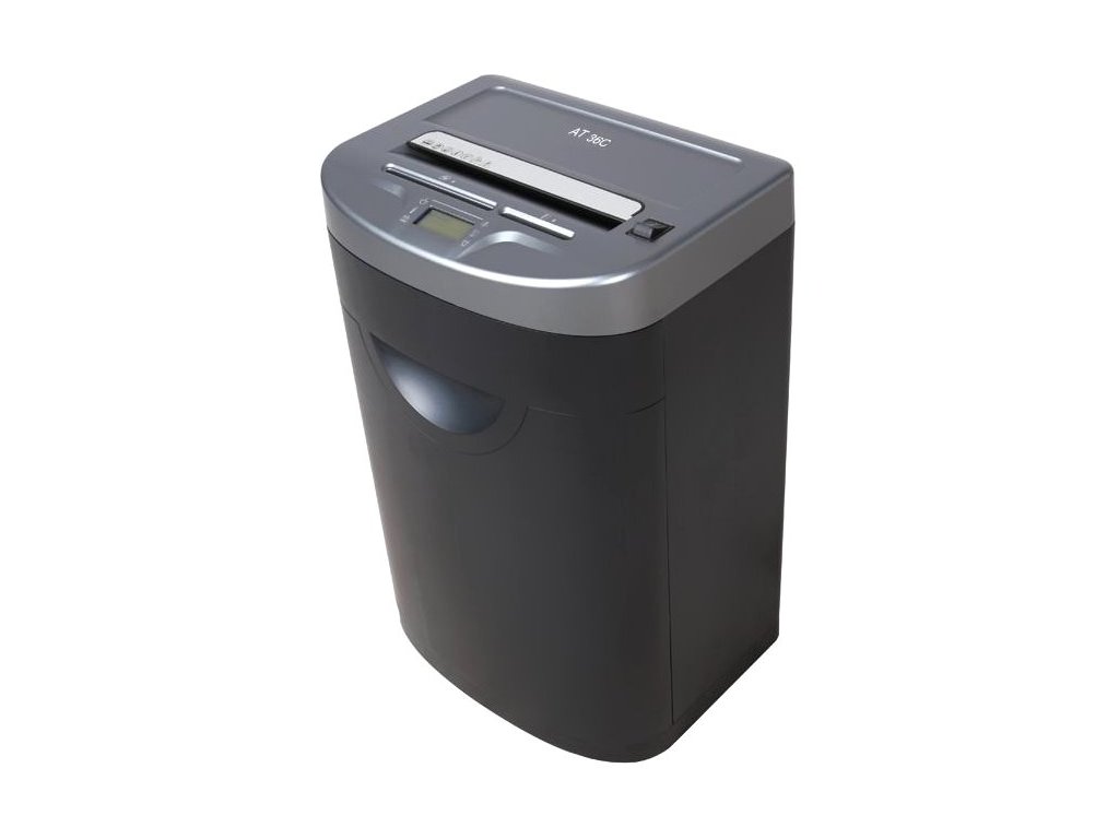 AT AT-36CSkartovací stroj praktického designu pro kanceláře a úřady. Je vhodný pro skartaci dokumentů o šířce až 230 mm. Skartovač je vybaven bezpečnostní funkcí Safe Touch, která zastaví stroj při dotyku rukou v oblasti vstupního otvoru. Disponuje LCD displejem pro kontrolu spuštěných funkcí. Stroj je standardně vybaven automatickým systémem start/stop, zpětným chodem, tepelnou pojistkou motoru proti přehřátí a signalizací přeplněného koše. Příležitostně lze skartovat sešívací i kancelářské sponky, a díky samostatnému vstupu i kreditní karty a CD. Lehce vyprázdnitelná odpadní nádoba má objem 35 l.