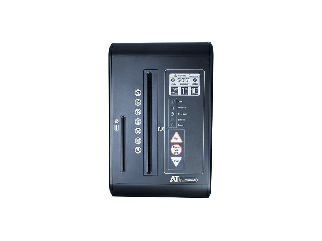 AT AT-SLIM-S-P4Kvalitní skartovací stroj v kompaktním úzkém provedení je vhodný pro skartaci dokumentů o šířce až 230 mm. Stroj je standardně vybaven automatickým systémem start/stop, zpětným chodem, tepelnou pojistkou motoru proti přehřátí a signalizací přeplněného či vysunutého koše. Příležitostně lze skartovat sešívací sponky a díky samostatnému vstupu i kreditní karty a CD. Lehce vyprázdnitelná odpadní nádoba má objem 22 l. Praktická pojezdová kolečka usnadňují manipulaci.