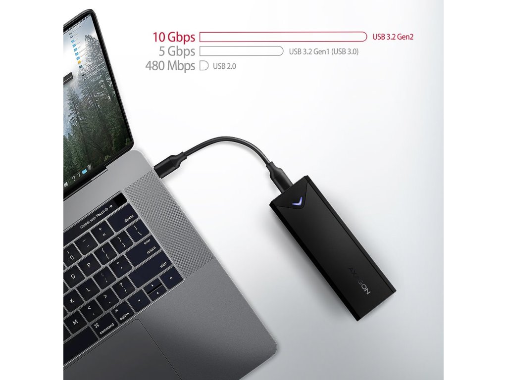 AXAGON EEM2-UB2Externí box pro připojení M.2 NVMe disku k vašemu PC, notebooku, TV či jinému multimediálnímu zařízení pomocí konektoru USB-C, přes který je zároveň i napájen. Hliníkové tělo napomáhá lepšímu chlazení vloženého disku.
