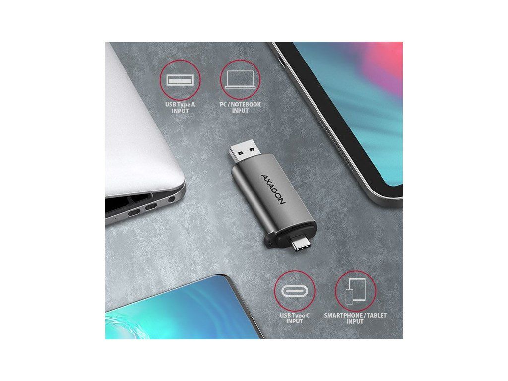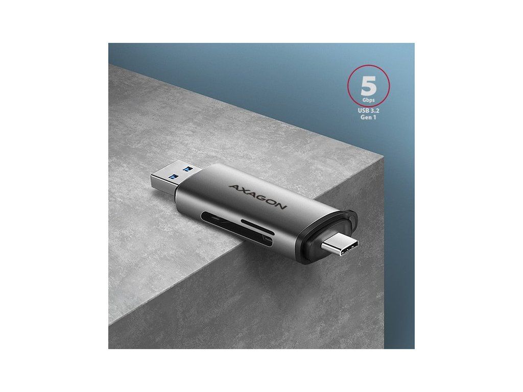 AXAGON čtečka paměťových karet MicroSD/SD / CRE-SAC / USB-A / USB-C / 3.2 Gen1 /