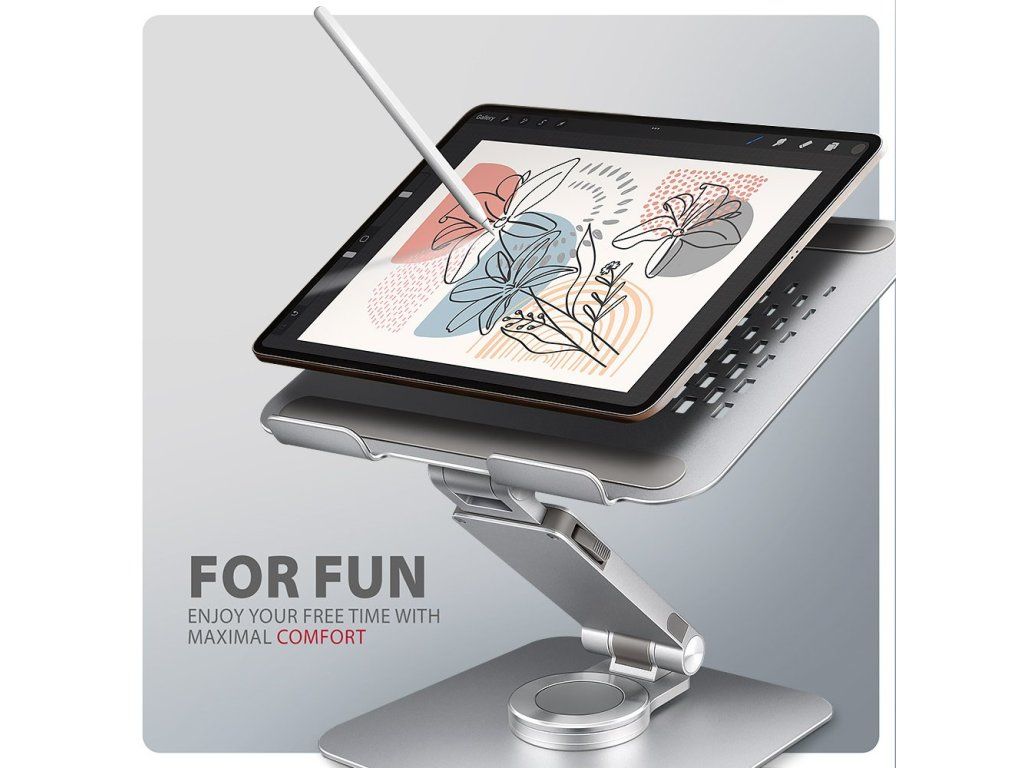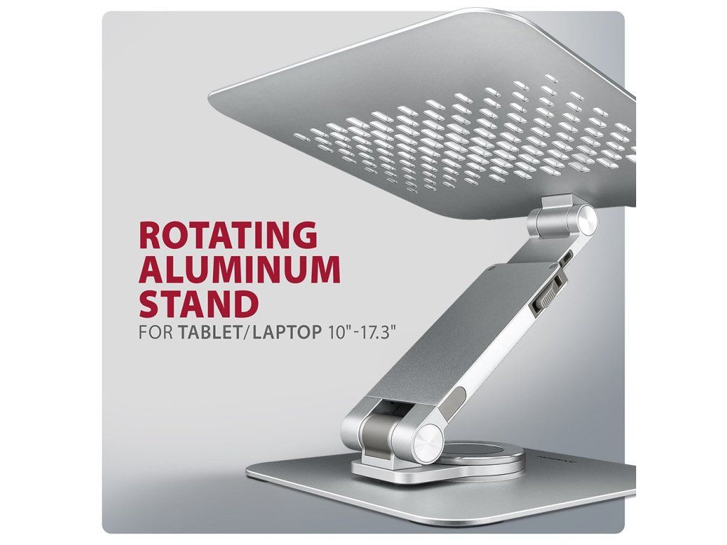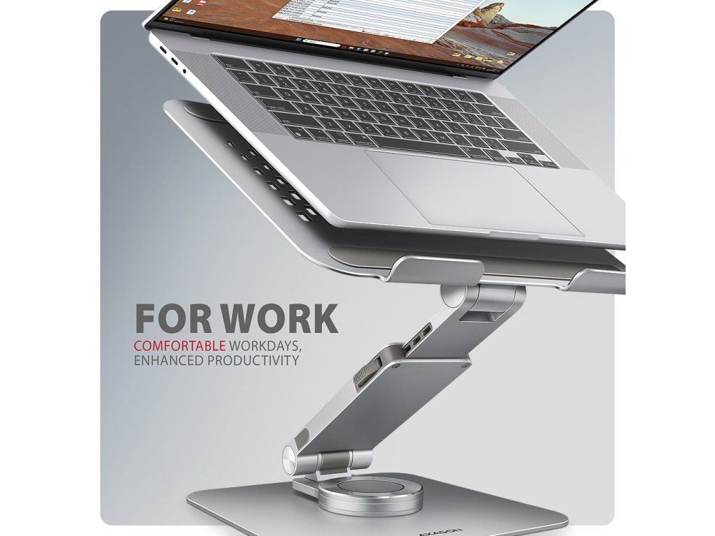 Hliníkový stojan s 360° rotací pro notebooky a tablety s maximální ergonomií a flexibilitou.