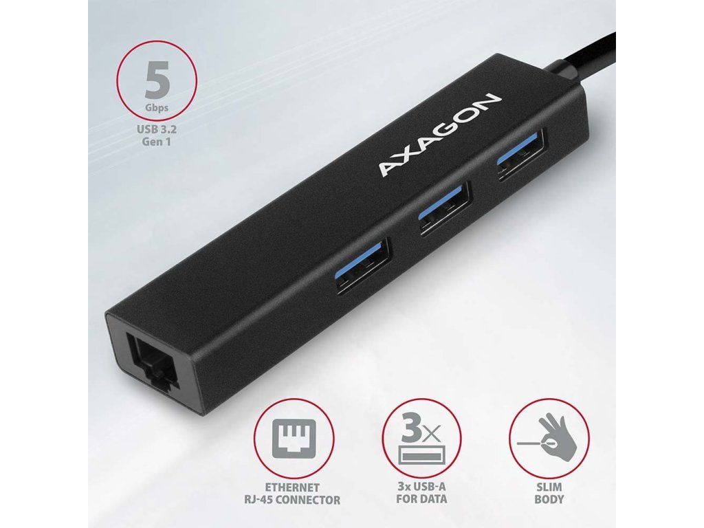 AXAGON hub USB-A / HMA-GL3A / USB 3.2 Gen1 / 3x USB-A / GLAN / kovové tělo / 0,2m