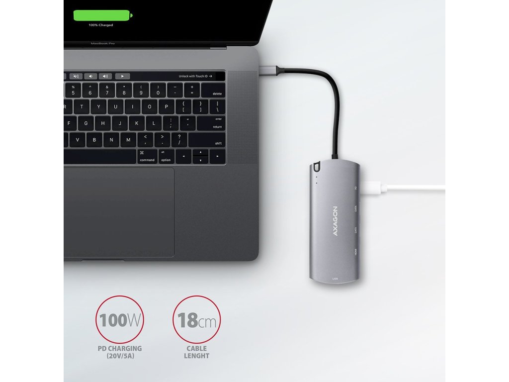AXAGON hub USB-C / HMC-6M2 / USB 3.2 Gen1 / 2x USB-A / HDMI / GLAN / SATA M.2 / 100W PD / 0,1m