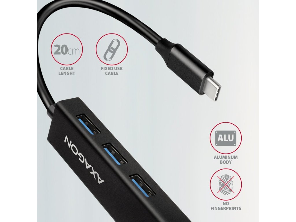 AXAGON hub USB-C / HMC-GL3A / USB 3.2 Gen1 / 3x USB-A / GLAN / kovové tělo / 0,2m