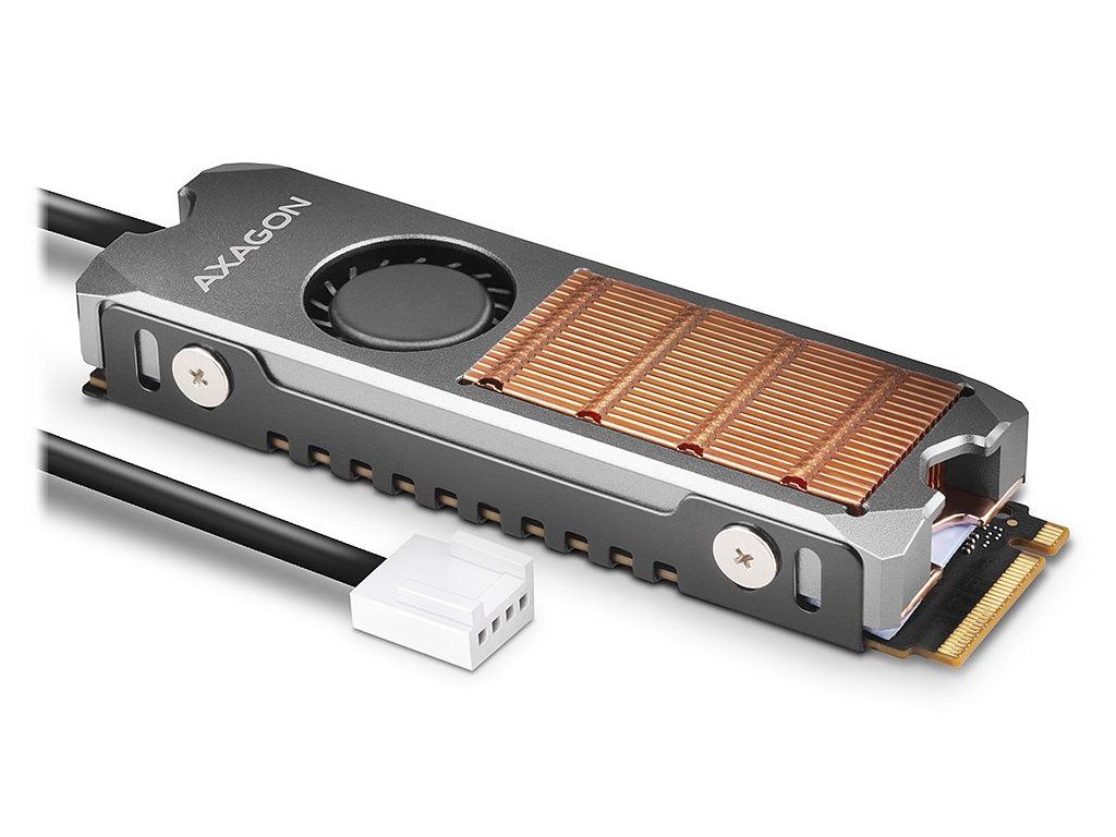 AXAGON měděný chladič s ventilátorem pro M.2 SSD / CLR-M2FAN / 2280 / výška chladiče 12mm