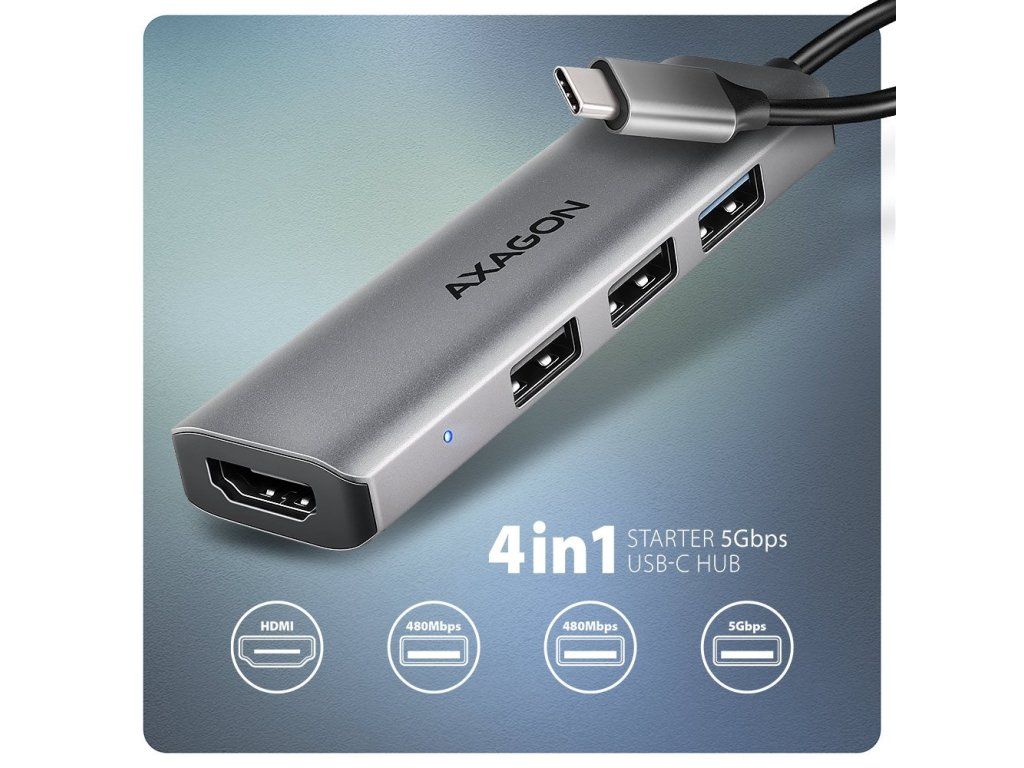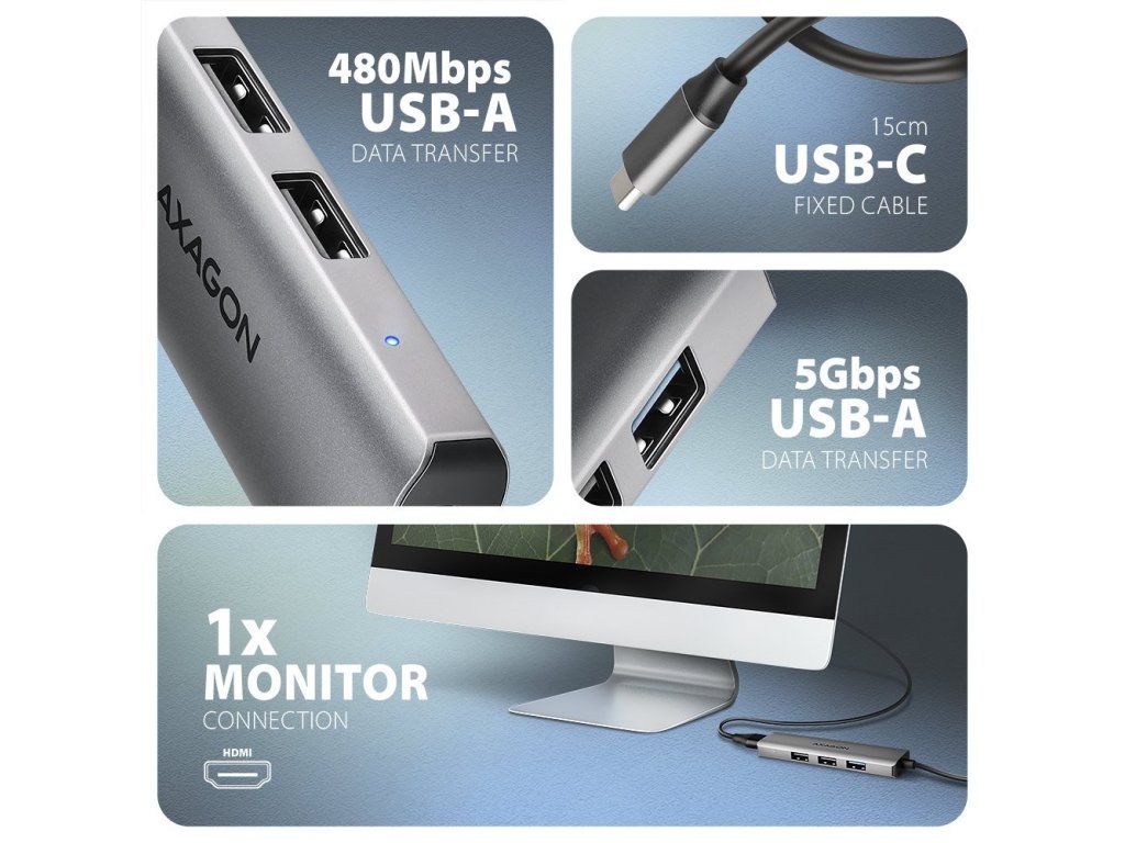 AXAGON multi 4in1 USB-C hub / HMC-H3A / USB 3.2 Gen1 / 3x USB-A / HDMI / 15cm