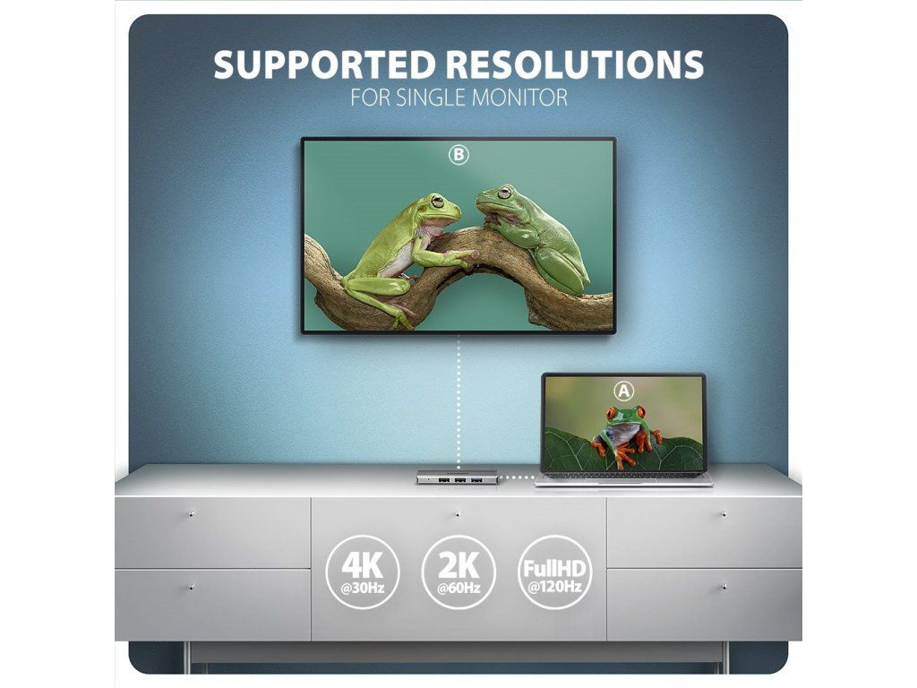 Pro správné fungování video výstupu je nutné, aby USB-C port notebooku podporoval DisplayPort Alternate Mode (DP Alt Mode) nebo Thunderbolt 3/4.