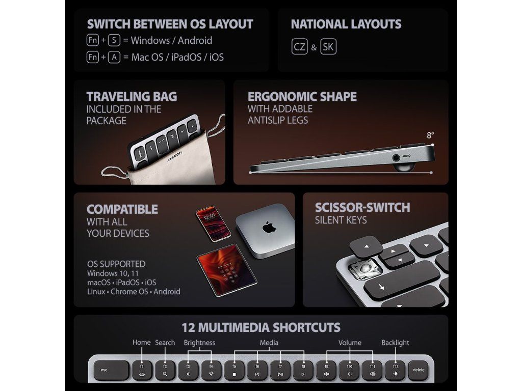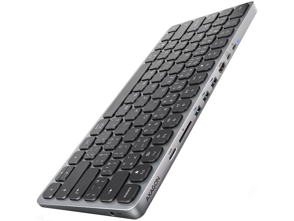 AXAGON multi portový USB-C hub s klávesnicí / HMC-KB-CS / HDMI / PD / 3x USB-A / CZ&SK / 60cm