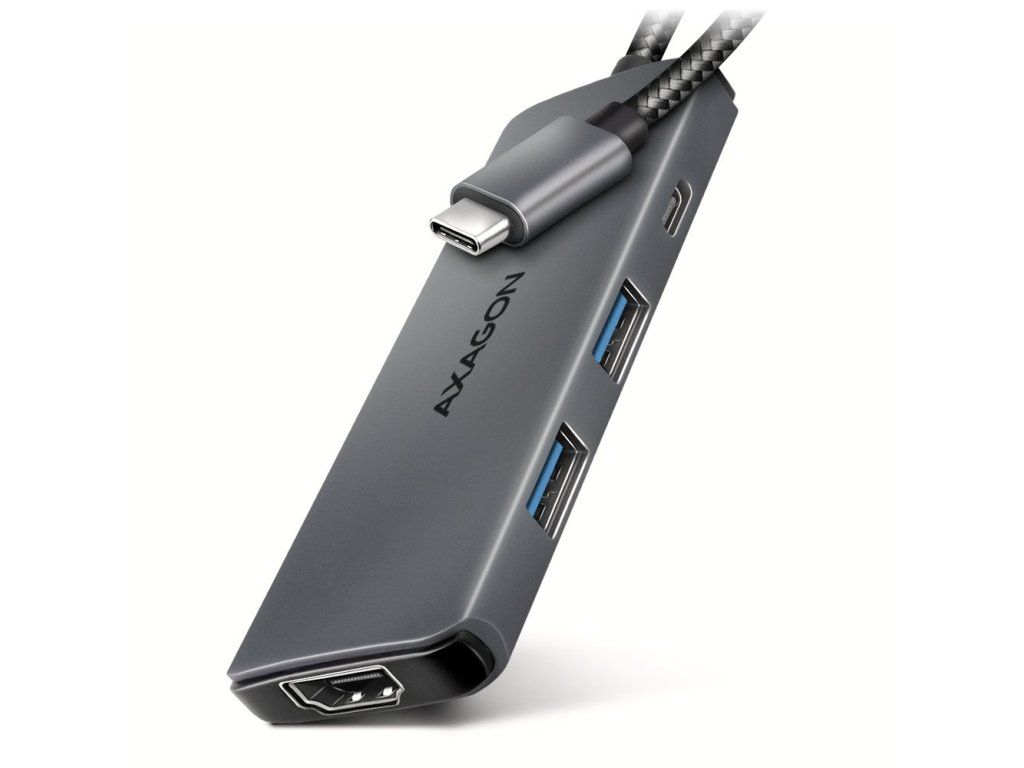 AXAGON HMC-5H8KDokovací stanice v hliníkovém provedení rozšíří váš notebook, počítač nebo telefon s USB-C rozhraním o pět portů. HDMI výstup poskytuje kvalitní obraz až do rozlišení 8K při 30 Hz nebo 4K při až 120 Hz a podporu HDR pro výrazně rozšířený rozsah barev a kontrastů. Pro připojení periférií jsou přítomny dva USB 3.0 porty a jeden USB-C port s rychlostí přenosu dat až 5 Gb/s. Druhý USB-C konektor je vyhrazen pouze pro napájení a současné dobíjení telefonů nebo notebooků pomocí technologie Power Delivery 3.0 výkonem až 100 W. Podmínkou je notebook s podporou nabíjení z USB-C portu pomocí Power Delivery a vhodná PD nabíječka.