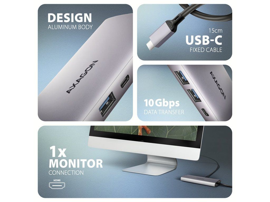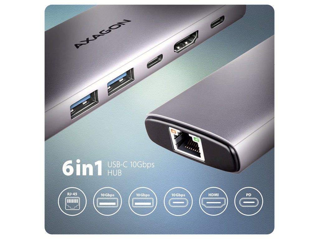 AXAGON multi USB-C 6v1 hub / HMC-6G2L / USB 3.2 Gen2 / 1x PD 100W / 1x USB-C / 2x USB-A / HDMI / 1x GLAN / 15cm