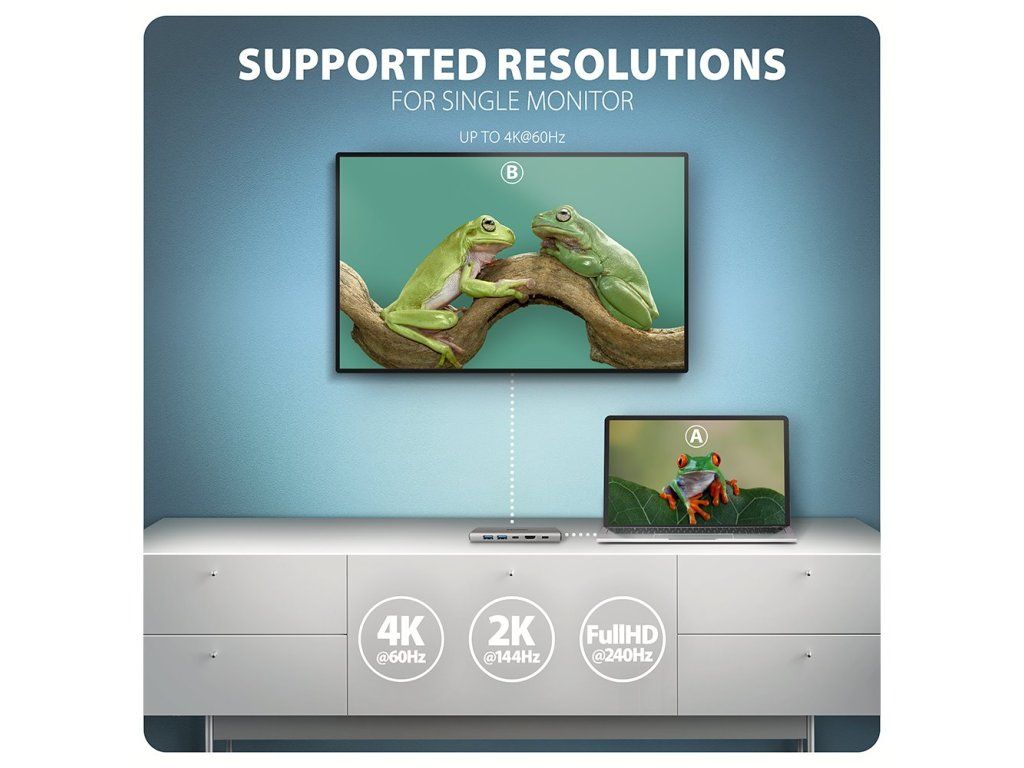 Pro správné fungování video výstupu je nutné, aby USB-C port notebooku podporoval DisplayPort Alternate Mode (DP Alt Mode) nebo Thunderbolt 3/4.