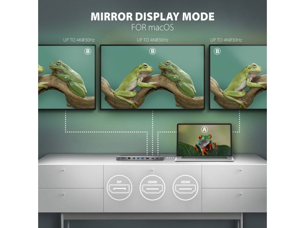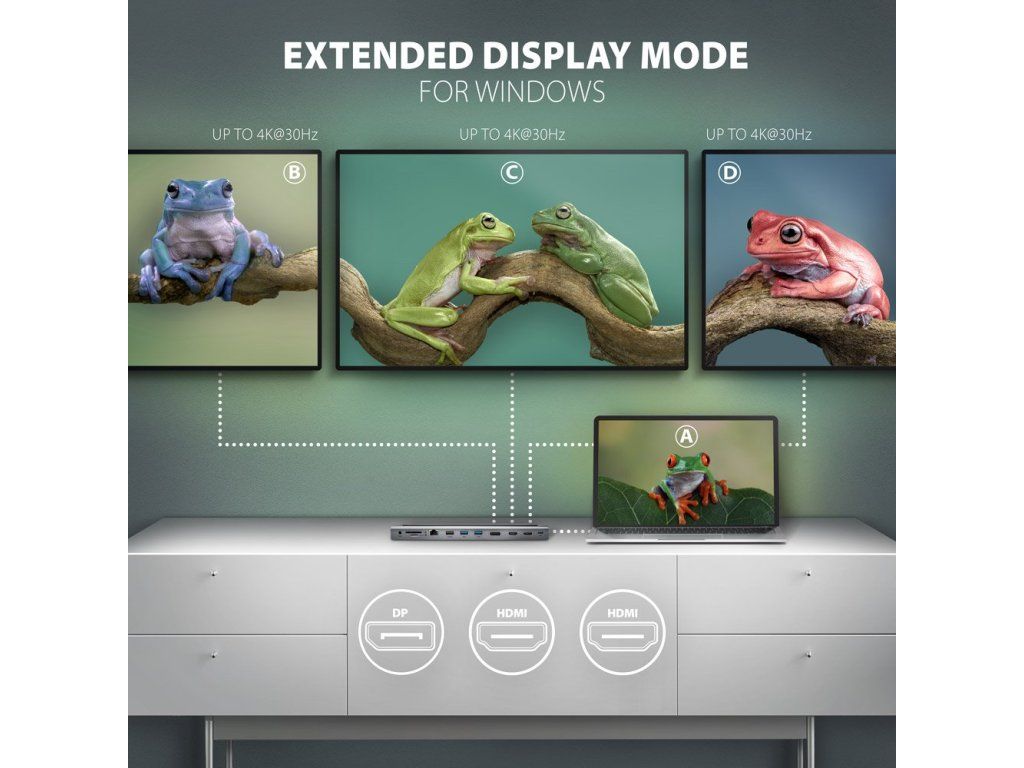 AXAGON multi USB-C hub 11in1 / HMC-4KX3 / 2x HDMI / 1x DP / PD100W / 1xUSB-C / 3x USB-A / kabel 40cm