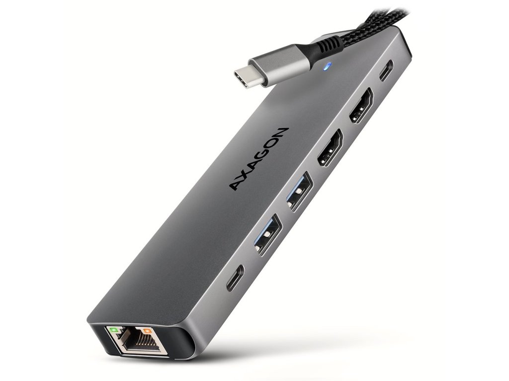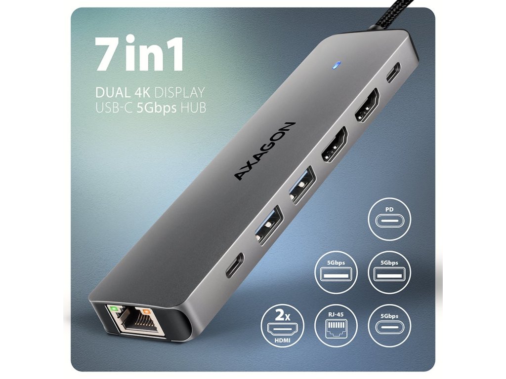 AXAGON multi USB-C hub 7in1 / HMC-7HX2 / PD 100W / 1xUSB-C / 2xUSB-A / 2xHDMI / RJ-45 / kabel 15cm