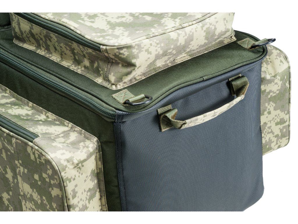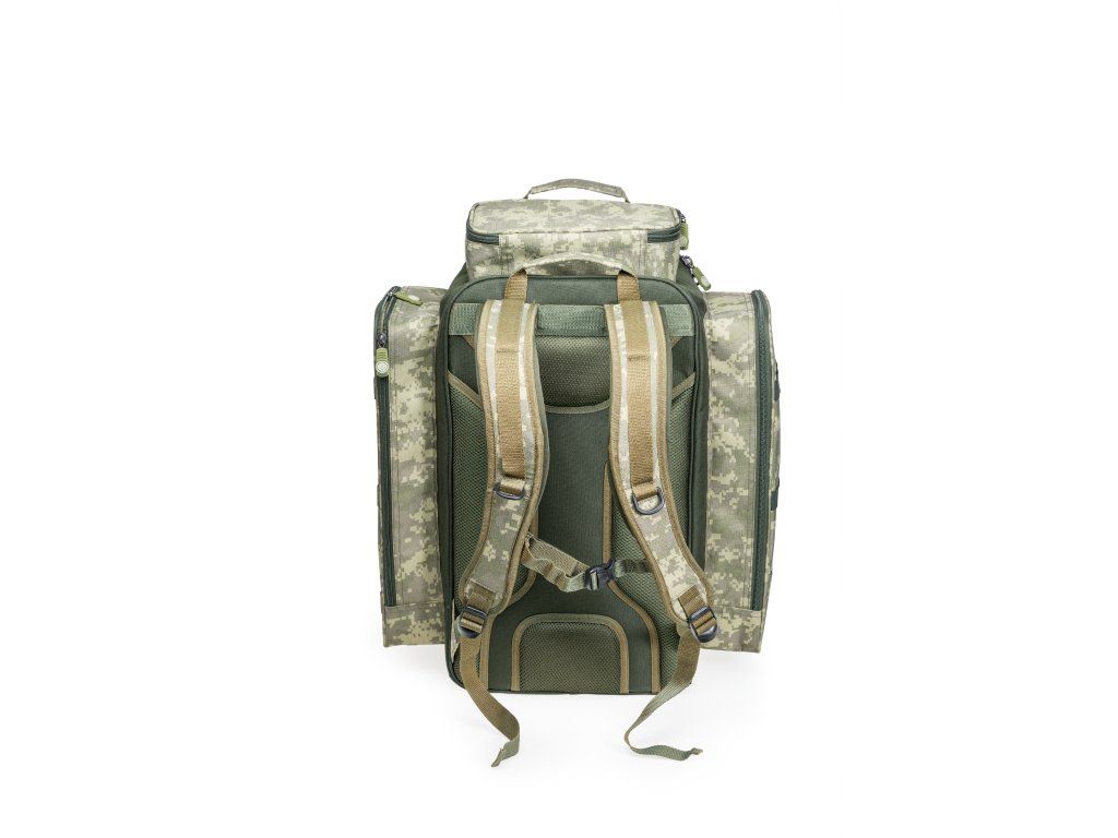 Batoh svou velikostí určitě uspokojí každého rybáře, který podniká krátké či delší vycházky. Jeho obsah pojme opravdu výbavu i náročného rybáře. Co mě však velice na tomto batohu zaujalo na první pohled je jeho otevírání hlavní kapsy. Batoh položený na jeho zadní část se dá otevřít jako taška. To je jedna z předních výhod tohoto produktu. Na všechno se pohodlně dostanete aniž by jste cokoliv museli vyndávat ven jako tomu bývá u klasických batohů plněných pouze z vrchní části.