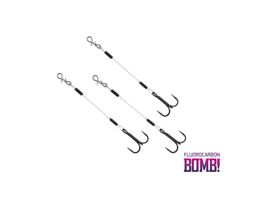 Hotové přívlačové návazce Twisto RIGS jsou zhotoveny z fluorokarbonu 0,50mm s nosností 12kg a kvalitního trojháčku od firmy Mustad. Všechny spoje jsou řešeny krimpovacími svorkami. Nejkratší, 6cm návazec má trojháček velikosti 8. Tento typ je velmi vhodný na menší nástrahy, osvědčil se i při lovu okounů. Středně dlouhý, 8cm návazec obsahuje trojháček velikosti 6. Nejdelší návazec z této série má 12cm a osazen je háčkem č. 1. Tyto dva návazce využijete při lovu větších ryb, nebo při potřebě většího háčku či delší vzdálenosti mezi hlavovou částí nástrahy a samotným trojháčkem. Twisto RIGS však nemusíte použít pouze s ostatními produkty TWISTO. Klidně jimi můžete dozbrojovat i gumy osazené klasickým jigovým háčkem BOMB! V balení najdete 3 kusy.Doplňkové parametry