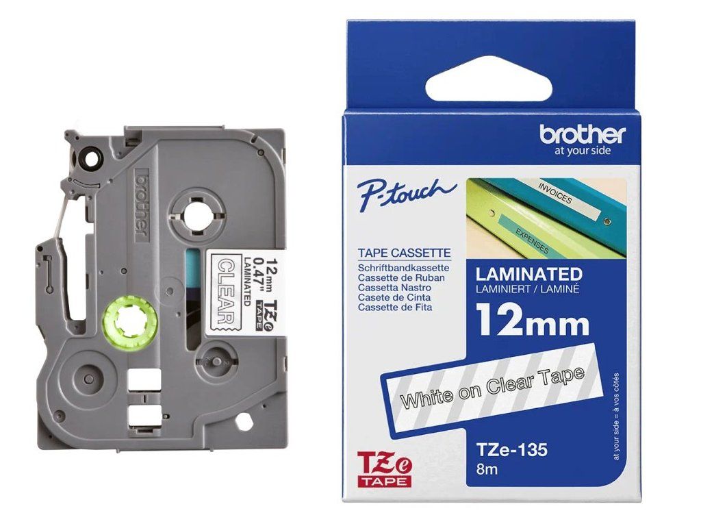 Brother TZE-135Kazeta s laminovanou páskou vhodnou pro denní použití v průmyslové výrobě, skladech, kancelářích apod. Páska je vysoce odolná proti teplotním vlivům, poškrábání, slunečnímu záření a díky tomu je zaručena ochrana vytištěného textu.