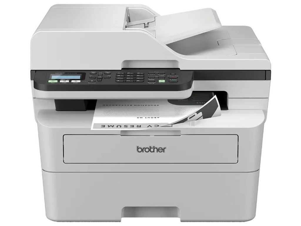 Brother MFC-B7810DWMultifunkční černobílá tiskárna formátu A4 nabízející funkce tisku, skeneru, kopírky a faxu. Rozlišení tisku je až 1200 × 1200 DPI a rychlost tisku činí až 34 stran za minutu. Tiskárna disponuje dvouřádkovým LCD displejem s tlačítky. Vybavena je zásobníkem papíru s kapacitou 250 listů. Navíc má k dispozici automatický podavač dokumentů s kapacitou 50 listů. Potěší též automatický duplexní tisk s rychlostí až 16 stran za minutu. Tiskárnu můžete jednoduše připojit jak drátově pomocí USB či LAN portu, tak bezdrátově pomocí Wi-Fi.