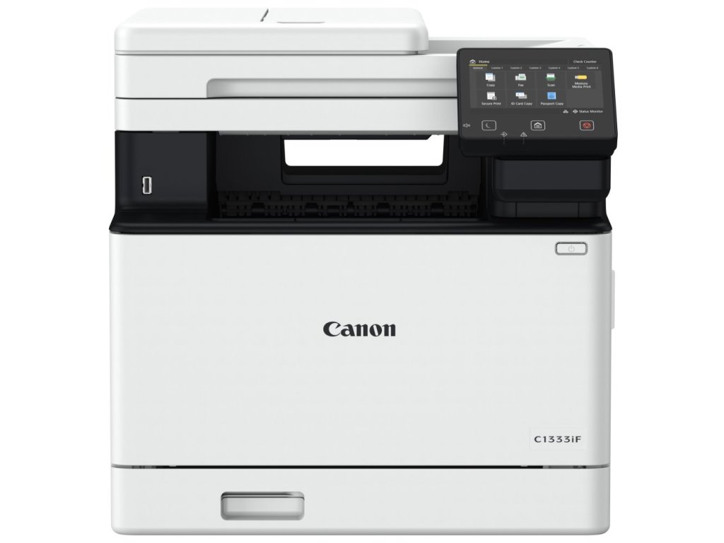 Canon i-SENSYS X C1333iFMultifunkční barevná laserová tiskárna formátu A4 nabízí rozlišení tisku 1200 x 1200 dpi při rychlosti až 33 stran za minutu černobíle i barevně. Disponuje vestavěným skenerem s rozlišením 600 x 600 dpi a rychlostí skenování až 50 stran za minutu. Vybavena je dvěma zásobníky papíru s celkovou kapacitou 300 listů. Potěší též automatický podavač dokumentů s kapacitou 50 listů či automatický duplexní tisk. Ovládání tiskárny je velmi snadné díky 5" dotykovému displeji. Připojení k počítači je realizováno skrze USB, ethernetový LAN port nebo bezdrátově pomocí Wi-Fi. Pro rychlý tisk z médií je připraven USB host port. Předností je také skenování a tisk z a do cloudového úložiště pomocí aplikace Canon PRINT Business. Tiskárnu lze využít i jako fax.