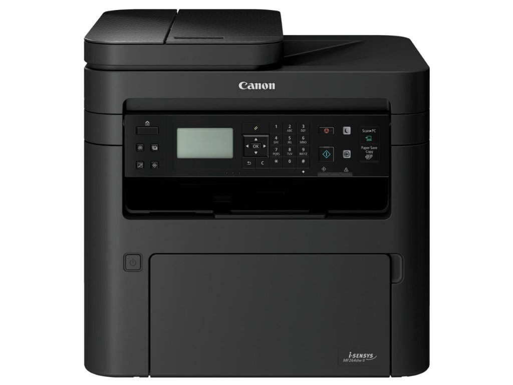 Canon i-SENSYS MF264dw IIMultifunkční černobílá laserová tiskárna formátu A4 nabízí rychlost tisku až 28 stran za minutu a rozlišení tisku 1200 x 1200 dpi. Disponuje vestavěným skenerem s rozlišením 600 x 600 dpi a rychlostí skenování až 20 stran za minutu. Vybavena je zásobníky papíru s celkovou kapacitou 250 listů. Potěší též automatický podavač dokumentů s kapacitou 35 listů a automatický duplexní tisk. Ovládání tiskárny je velmi snadné díky LCD displeji a ovládacím prvkům na panelu. Připojení k počítači je realizováno skrze USB, ethernetový LAN port nebo bezdrátově pomocí Wi-Fi. Předností je také skenování a tisk z a do cloudového úložiště pomocí aplikace Canon PRINT Business.
