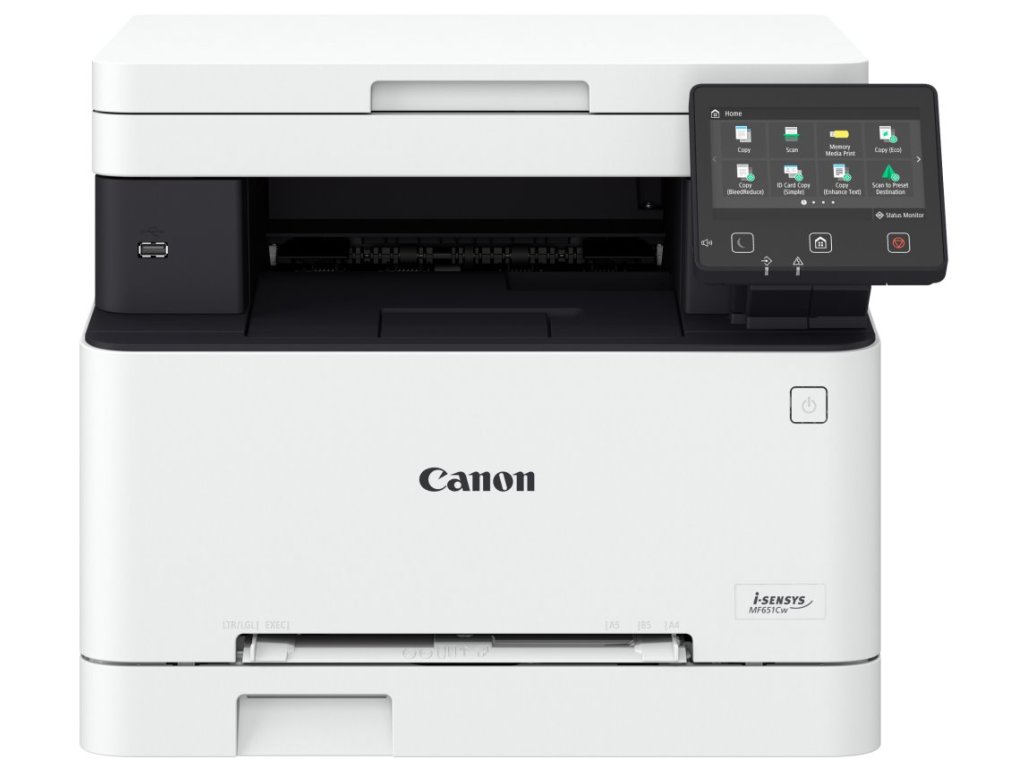 Canon i-SENSYS MF651CwMultifunkční barevná laserová tiskárna formátu A4 nabízí rozlišení tisku 1200 × 1200 DPI při rychlosti až 18 stran za minutu černobíle i barevně. Disponuje vestavěným skenerem s rozlišením 600 × 600 DPI a zásobníkem papíru s kapacitou 250 listů. Ovládání tiskárny je velmi snadné díky 5" dotykovému displeji a ovládacím prvkům na panelu. Připojení k počítači je realizováno skrze USB, ethernetový LAN port nebo bezdrátově pomocí Wi-Fi. Lze tak tisknout přímo z mobilního zařízení bez přístupu k firemní síti, odkudkoli v kanceláři. Pro rychlý tisk z médií je připraven USB host port. Předností je také skenování a tisk z a do cloudového úložiště pomocí aplikace Canon PRINT Business.