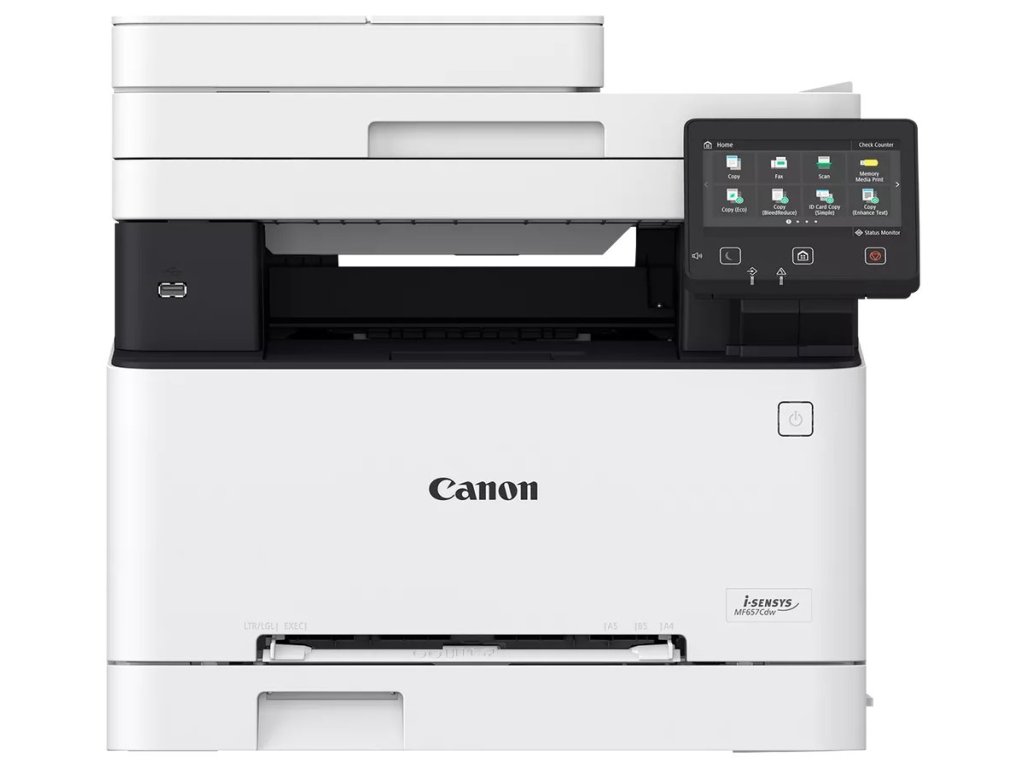 Canon i-SENSYS MF657CdwMultifunkční barevná laserová tiskárna formátu A4 nabízí rozlišení tisku 1200 x 1200 dpi při rychlosti až 21 stran za minutu černobíle i barevně. Disponuje vestavěným skenerem s rozlišením 600 x 600 dpi a rychlostí skenování až 27 stran za minutu. Vybavena je zásobníkem papíru s kapacitou 250 listů. Potěší též automatický podavač dokumentů s kapacitou 50 listů a automatický duplexní tisk. Ovládání tiskárny je velmi snadné díky 5" dotykovému displeji a ovládacím prvkům na panelu. Připojení k počítači je realizováno skrze USB, ethernetový LAN port nebo bezdrátově pomocí Wi-Fi. Lze tak tisknout přímo z mobilního zařízení bez přístupu k firemní síti, odkudkoli v kanceláři. Pro rychlý tisk z médií je připraven USB host port. Předností je také skenování a tisk z a do cloudového úložiště pomocí aplikace Canon PRINT Business. Tiskárnu lze využít i jako fax.